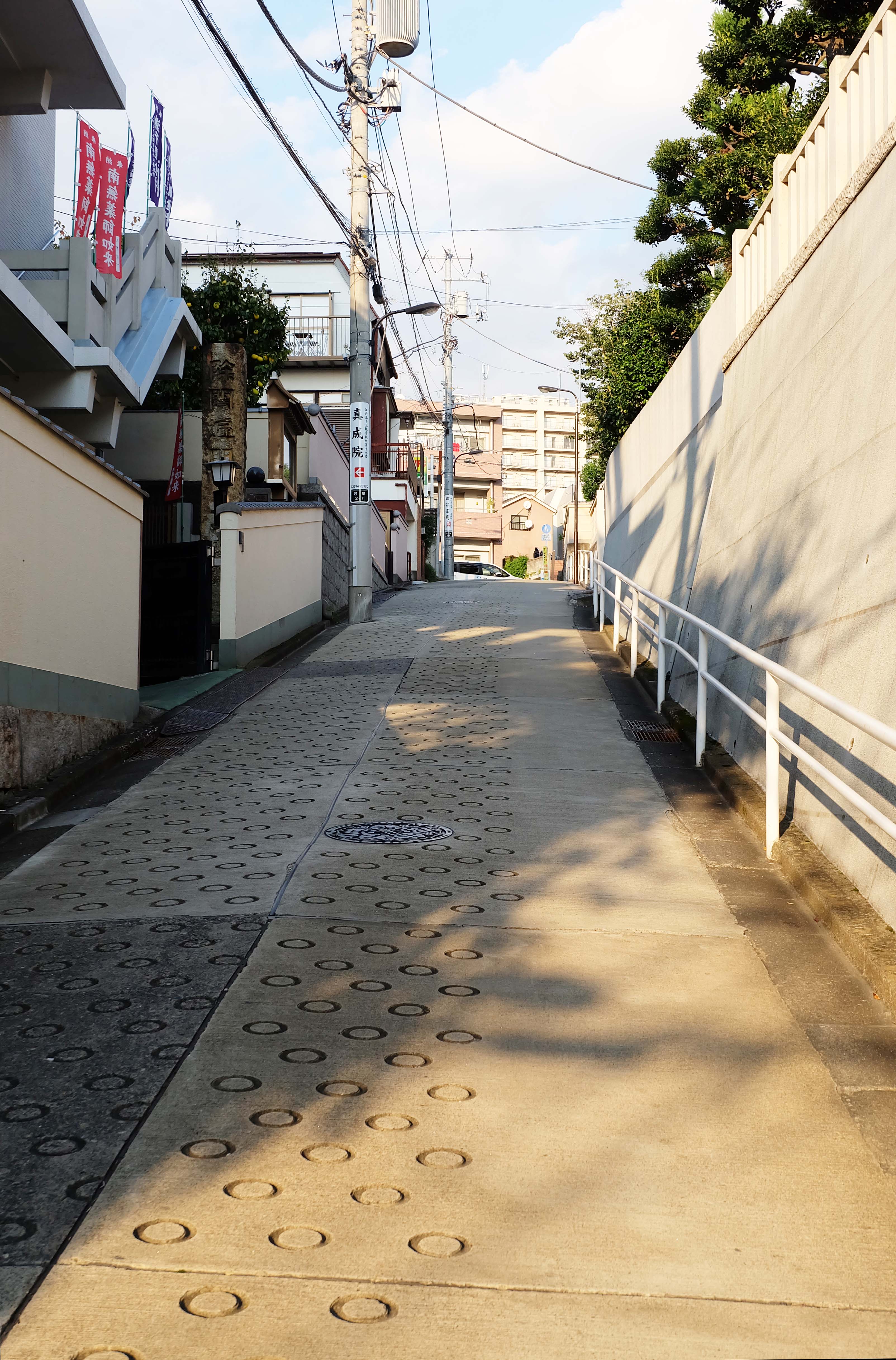 概要 | ①『新撰東京名所図会』には「真成院門前を南へ下る坂なり。潮踏観音堂あり。又西念寺坂とも称す。坂の上に西念寺あり」とある。 ②『御府内備考』には「西念寺坂 伊賀町西念寺の側の坂をいう」と記されている。 ③同じく『御府内備考』には「坂 高弐丈九尺幅弐間。右者町内北之方より東之方真成院前通え登候坂に而観音坂と相唱申す。右者同寺境内に潮踏観音堂有之候に付相唱来申候。登半町程寺方持に而町内掛に御座無く候」とある。 ④坂名は、真成院の潮踏観音の名に由来する。 ⑤別名 西念寺坂、西念坂、潮踏坂、潮干坂 ⑥『江戸砂子』に「一尺ばかりの石のうえに座像の聖観音なり。此石、潮時々にさだまりて湿る事あり」と書かれている。 |